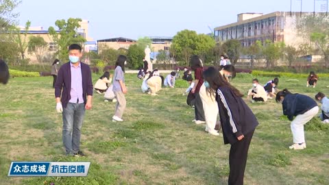学生学习之余,在学院统一安排下,我带着学生在陶行知广场拔草,夕阳很美,学生拔草、追逐、嬉闹,突然就觉得外面空气很清新。劳动结束以后,学生意犹未尽,问我下次什么时候还带他们来拔草,我说下次我们劳动教育课一起学习收纳,女生欢呼雀跃,男生嘘声四起,我看着他们无忧无虑的样子,持续紧绷的抗疫神经得到了片刻的舒缓。