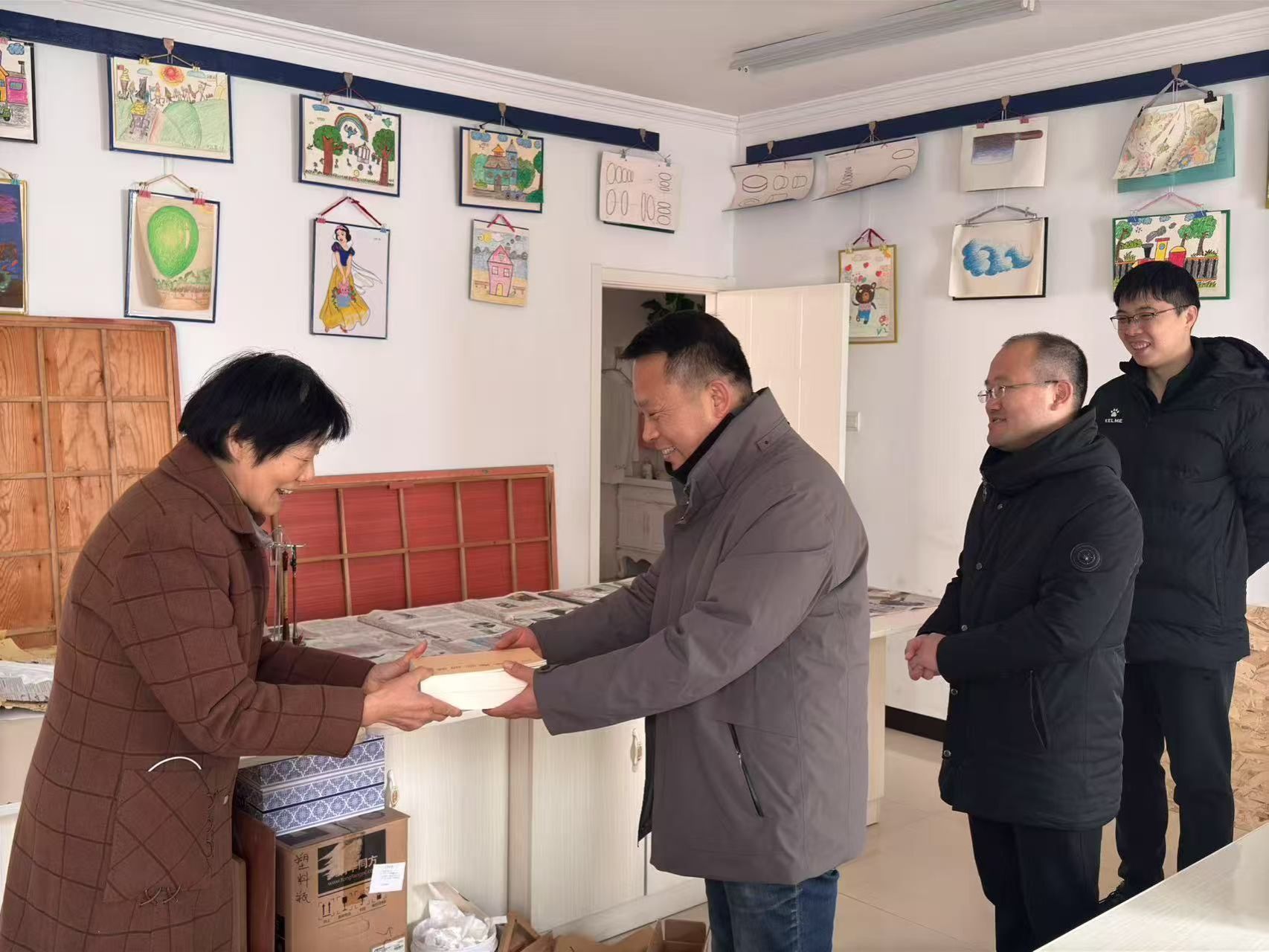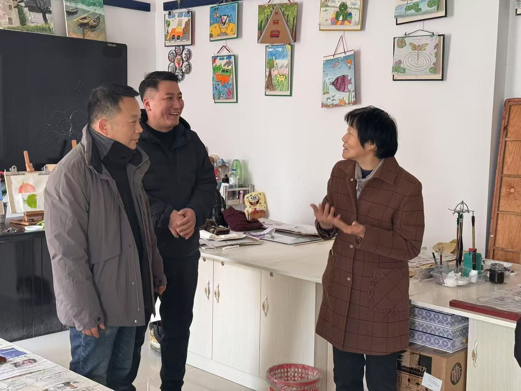 121日上午,艺体学院党总支纪检委员、教师第二党支部书记王万潮慰问团队一行来到了退休党员谢永红老师的工作室,为她送去了慰问金和党建读物。团队一行参观了谢老师的工作室并与她进行了亲切交流,详细了解她的身体、生活以及家庭状况。对她为学校发展做出的贡献表示感谢