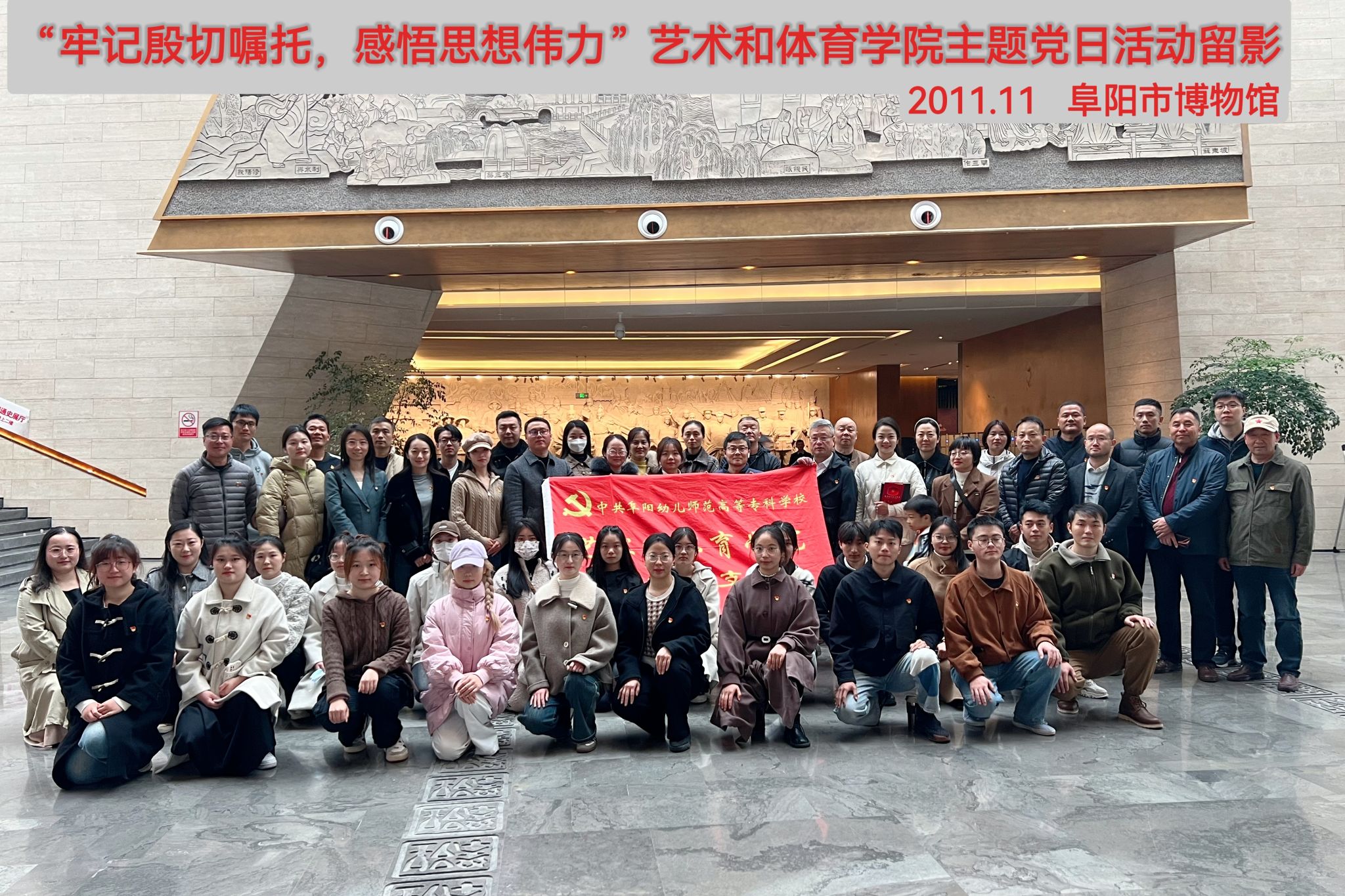 11月11日上午,艺术和体育学院党支部前往阜阳市博物馆开展主题党日活动,学院70余名师生党员、预备党员参与。