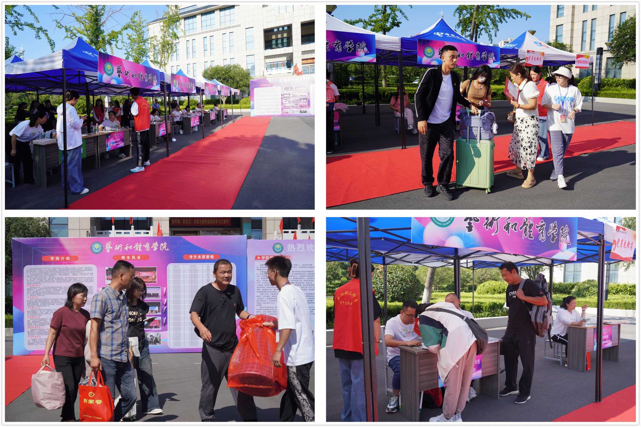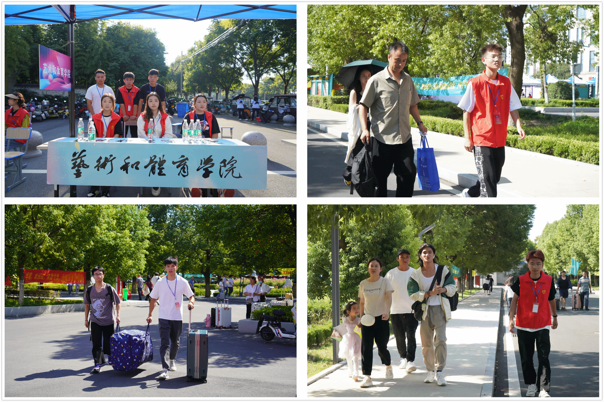 为确保新生顺利入学,艺体学院成立迎新工作组,设立志愿服务队,党员先锋岗,开辟“绿色通道”,竭力保障和服务新生入学事宜。迎新现场井然有序,志愿者和老师们耐心为新生提供入学指引、物品运送、答疑解惑等服务,让新生们快速了解学院具体情况,让新同学感触学院大家庭的温暖。