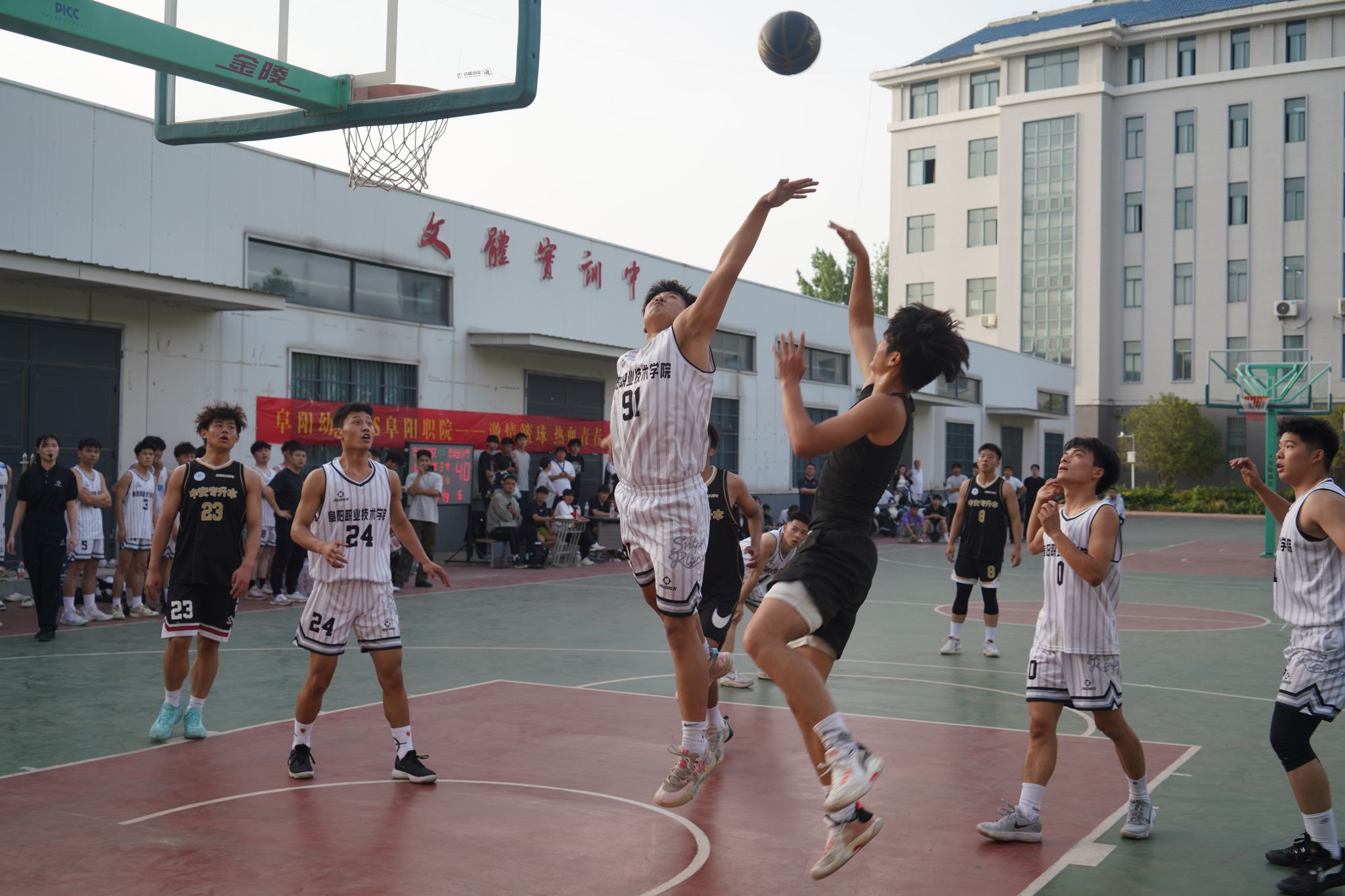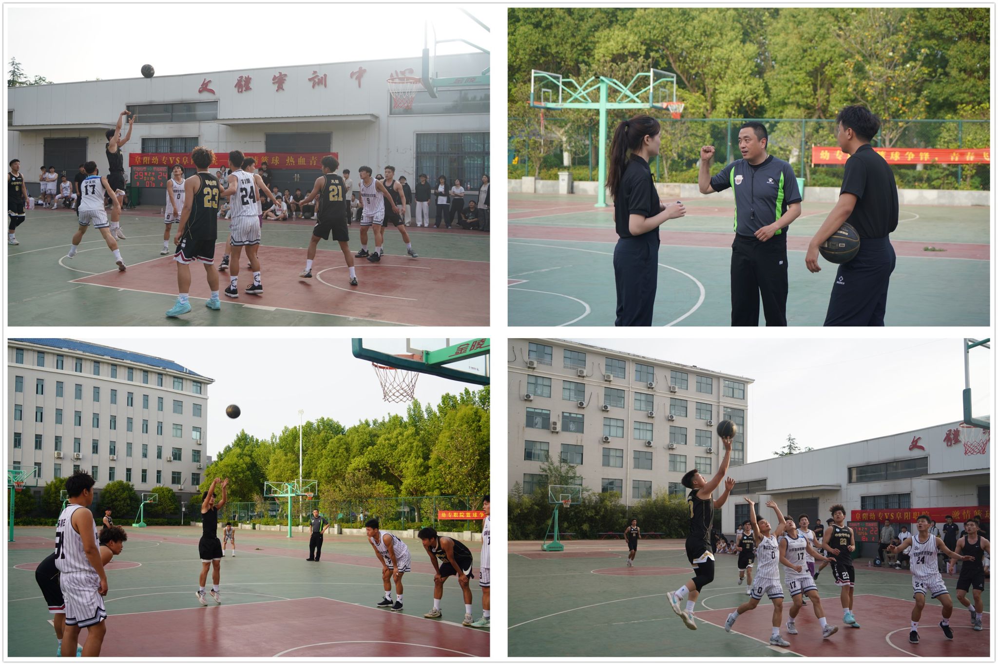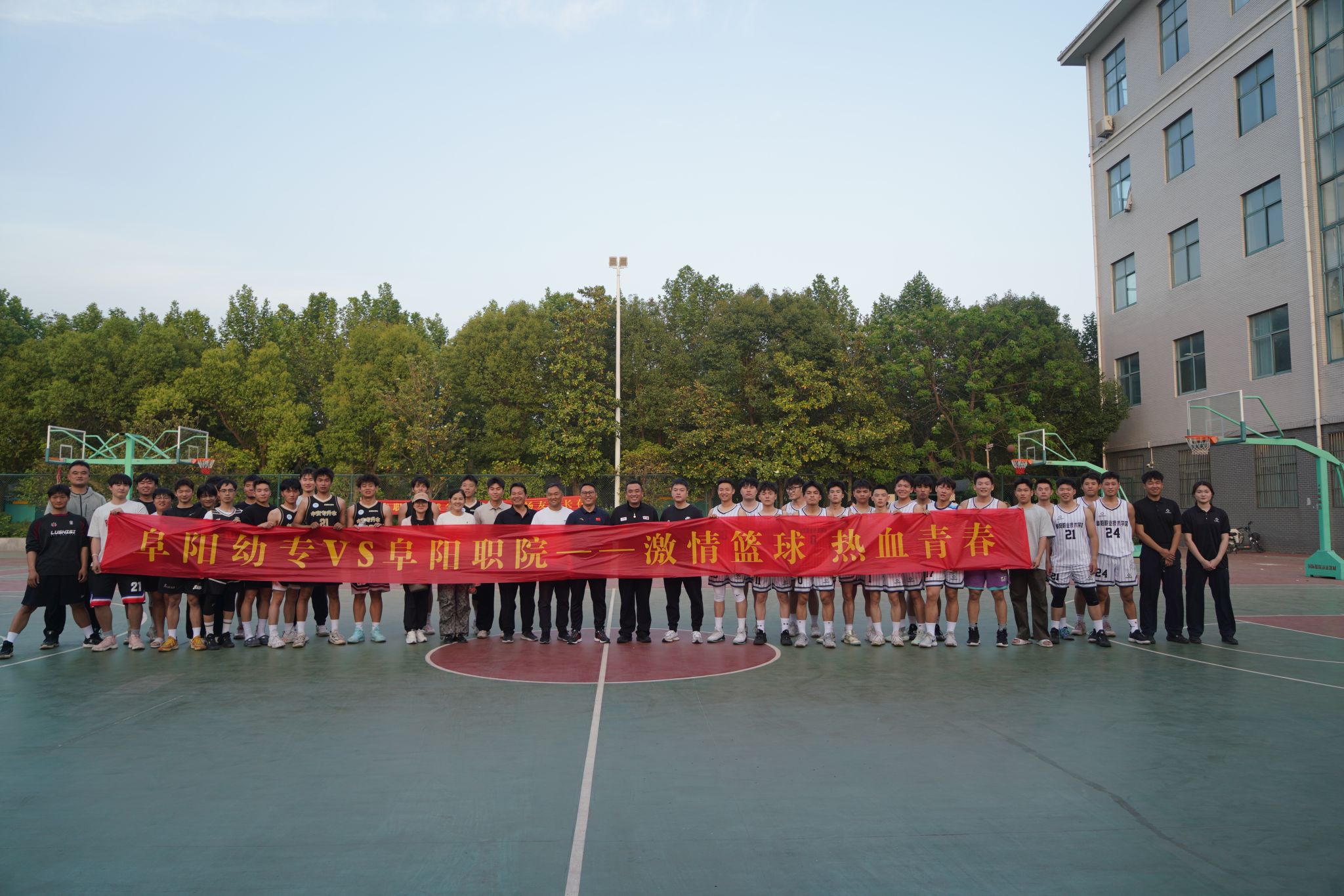 5月7日,阜阳幼儿师范高等专科学校与阜阳职业技术学院男子篮球友谊联赛在阜阳幼专篮球场成功举行