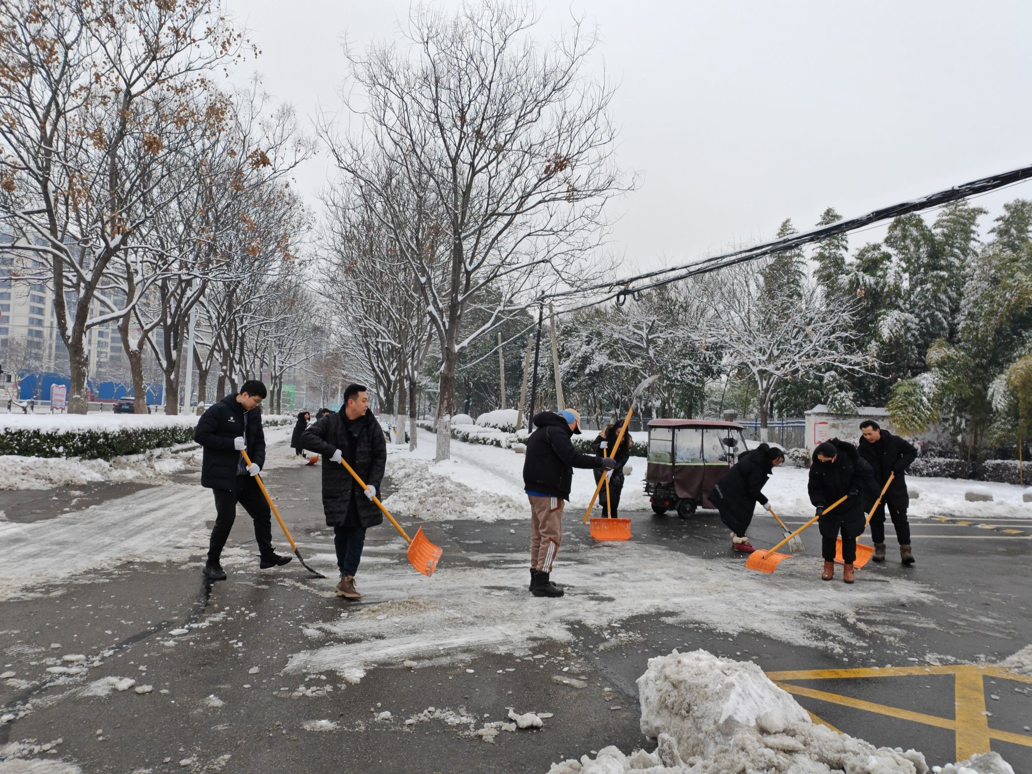 2月2日,阜阳市迎来2024年的第一场雪,皑皑白雪美化了城市净化了校园,但也给人们出行带来了不便。为了保证大家的出行安全和道路通畅,2月5日,艺术和体育学院党总支联合校机关党总支的同志们纷纷拿起铁锹、铁铲、扫帚等劳动工具,来到我校大门的清河西路路面上进行除冰清雪活动,大家不畏严寒、齐心协力共同奋战、配合默契,党员们铲的铲、推的推,干得热火朝天不亦乐乎,忙碌的身影构成了一道亮丽的风景线。经过一个小时的集中奋战,整个道路变得整洁通畅