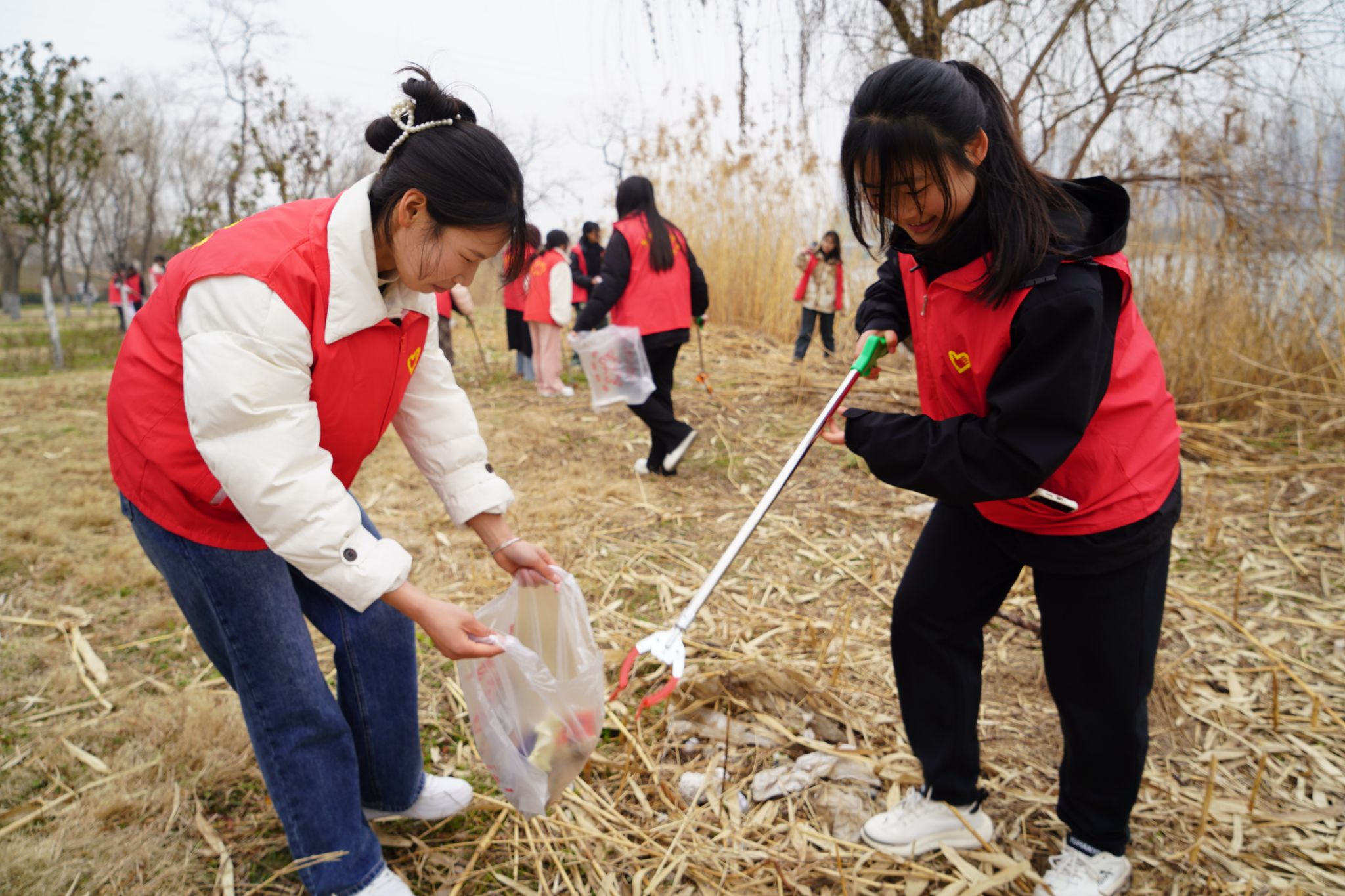 活动现场,学院师生志愿者们手持垃圾袋和夹子,沿着指定路线开展清河净滩志愿行动,仔细捡拾河岸边烟蒂、白色污染物等,不放过任何一个角落。