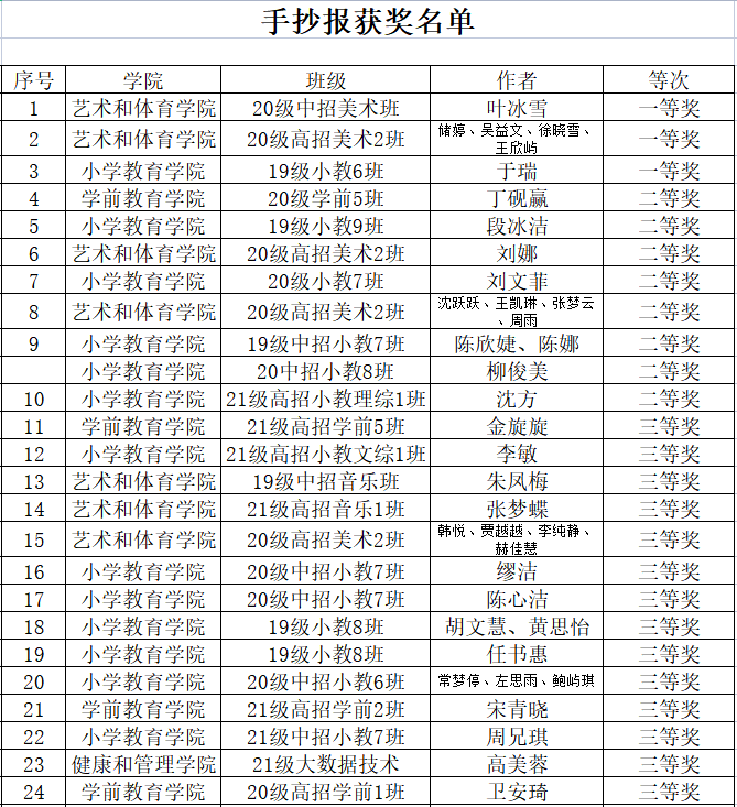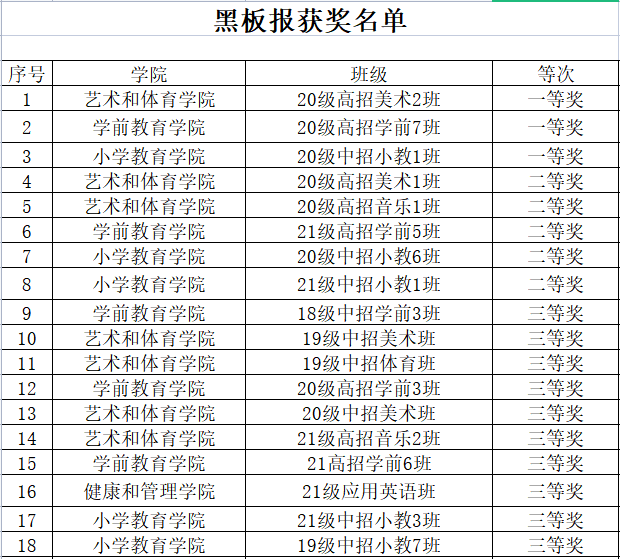 为大力培育、弘扬和践行新时代雷锋精神,教育引导广大师生厚植爱国主义情怀,推动校园文化建设,挖掘雷锋精神的时代特征,营造向上向善的良好校园风尚,3月24日下午,由艺术和体育学院主办,其他学院共同承办的“学雷锋、见行动、树新风”黑板报、手抄报比赛落下帷幕。