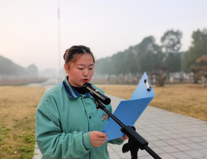 2021级高招音乐2班宋思思同学,教师代表范云峰以“学习十九届六中全会精神”为主题,从“争做新时代优秀大学生”和“新时代优秀教育工作者”的角度作国旗下演讲。作为新时代高校师生,要在党的百年奋斗中增强自信,从党的历史经验中汲取智慧,不断夯实政治认同基础,坚定中国共产党的领导,用奋斗致敬党的百年历史,以实干开创未来。在党的十九届六中全中审议通过了《中共中央关于党的百年奋斗重大成就和历史经验的决议》,告诫我们以实现中华民族的伟大复兴为己任,体现中国人的志气、骨气、底气,不负时代,不负韶华,不负党和人民的殷切期望。