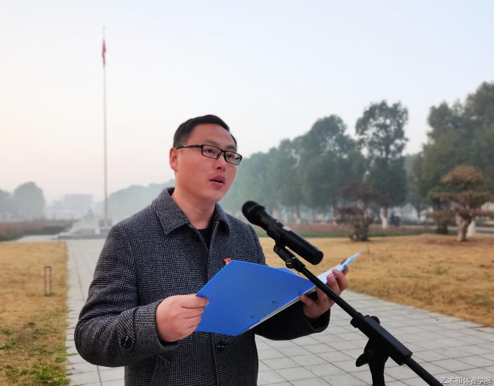 为学习贯彻党的十九届六中全会精神,提升学院师生爱国主义情怀,11月29日上午7 点10分,艺术和体育学院全体师生在行知楼广场前举行升旗仪式。仪式由韩雅琼主持。