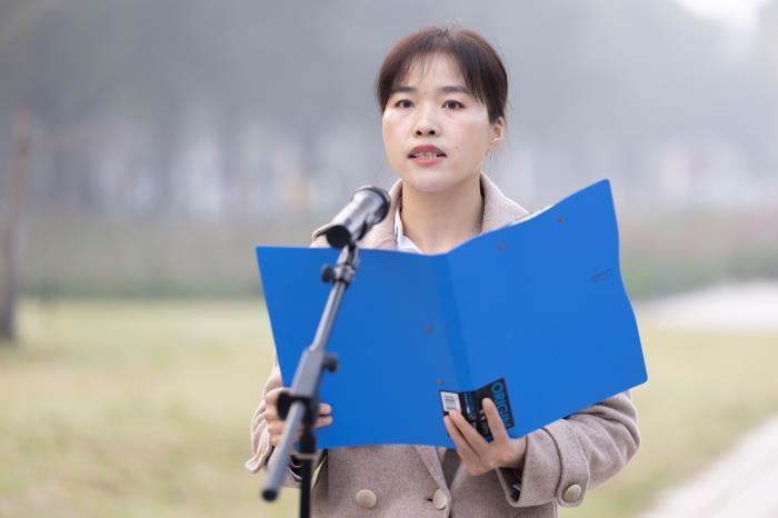 教师代表孙慧霞表示,作为新时代的高校教育工作者,要把全部的精力和满腔的真情献给教育事业,做不负时代,不负韶华,不负党和人民殷切期望的灵魂工程师,在担当中历炼,在尽责中成长,把青春热血融入党和人民的事业,争做走在时代前列的奋进者、开拓者、奉献者,主动扛起民族复兴的责任与担当,在教书育人中不断创造新的业绩。