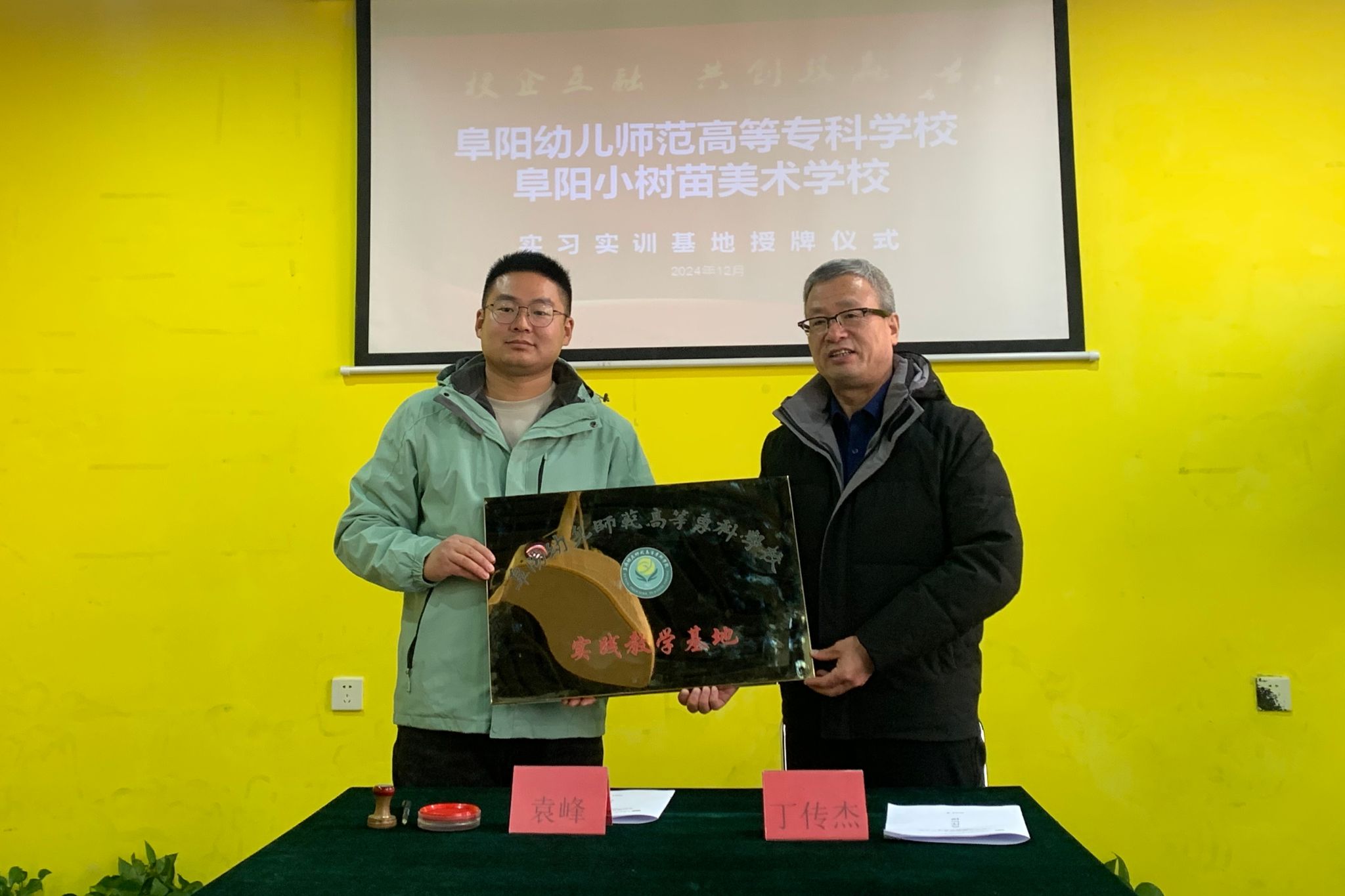 随后,在双方代表的见证下,正式签署了实践教学基地协议,并向小树苗美术学校颁发了实践教学基地牌匾。这标志着双方将正式建立起长期、稳定的合作关系,共同为培养优秀的艺术人才贡献力量。