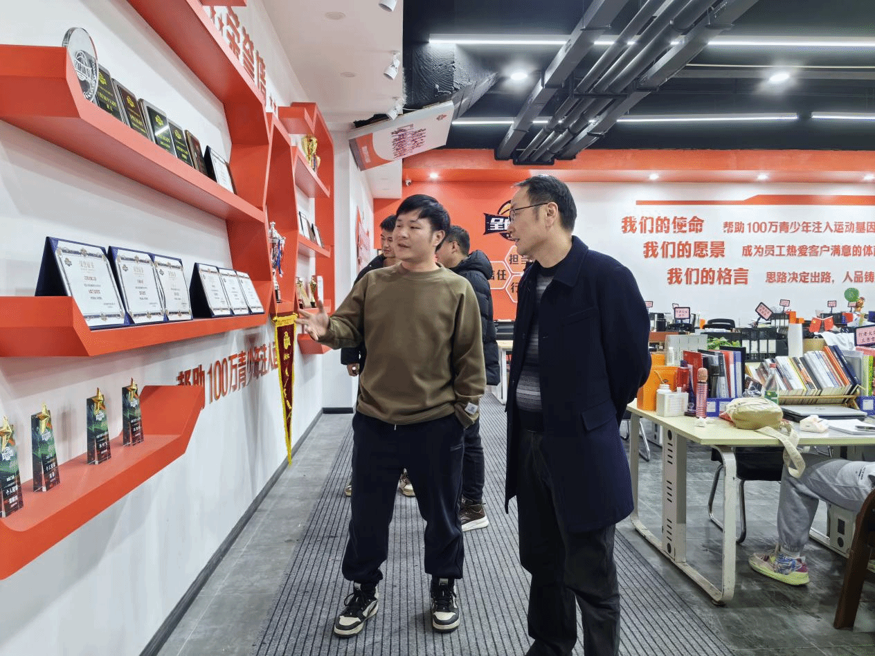 许宗志一行深入了解呈康体育发展历程、业务范围和人才培养等情况,并与公司相关负责人就校企合作、用人需求等方面进行深入交流。