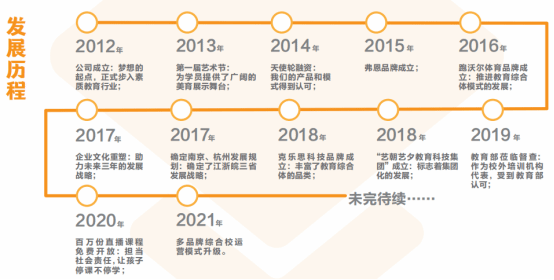 艺朝艺夕教育科技集团是一家定位于以学生全面成长为核心的、以科技为驱动力的综合性教育集团。2012年正式成立,经过十年的发展,集团先后创立多个素质教育品牌,成功构建一个汇聚艺术、语言、体育、科技于一体的综合教育模式。通过多样化教学产品和服务, 致力于孩子综合素质能力的全面培养,为践行“让孩子成为更好的自己”的使命不懈努力。