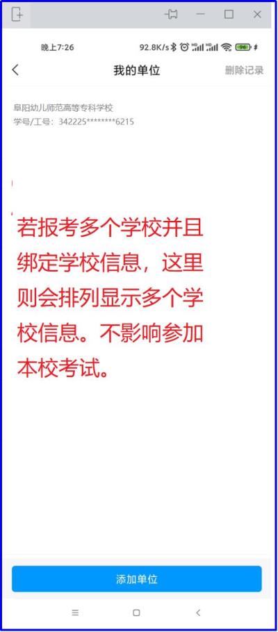 若一人报考多个学校,已注册同学直接在学习通app的设置→账号管理→单位设置里添加单位,输入学校名称和考生号即可。
