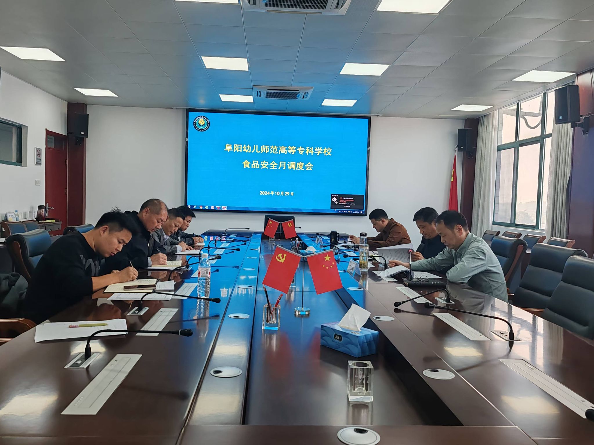 会上,总务处(保卫处)处长刘晓刚组织学习了《关于开展市级单位2024年度公共机构生活垃圾分类和反食品浪费成效评估工作的通知》及《关于通报2024年第三季度全省食品安全抽检监测不合格(问题)信息的函》,汇报了10月份食品安全管理工作并对下月重点工作进行了部署。学校三家食堂经理分别汇报了食品安全排查情况和反食品浪费工作开展情况。