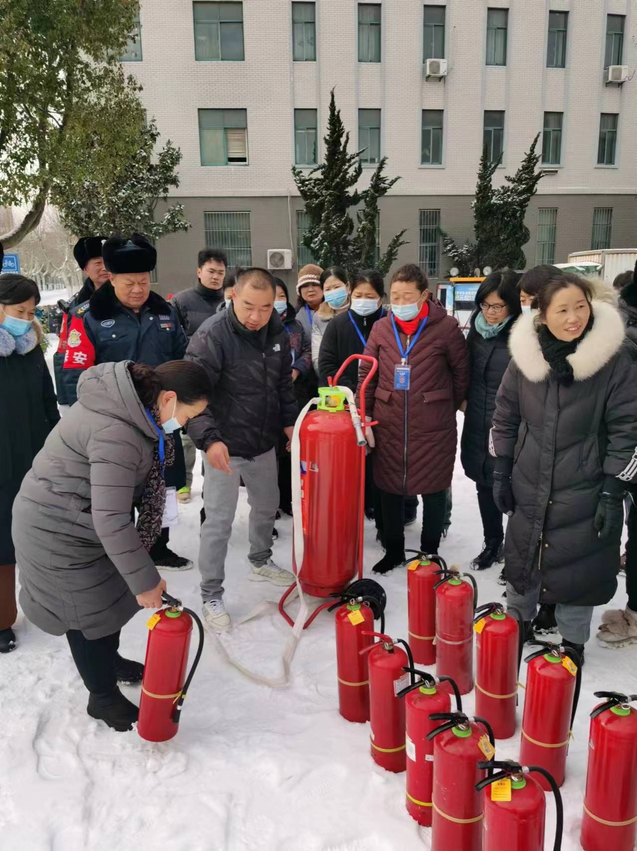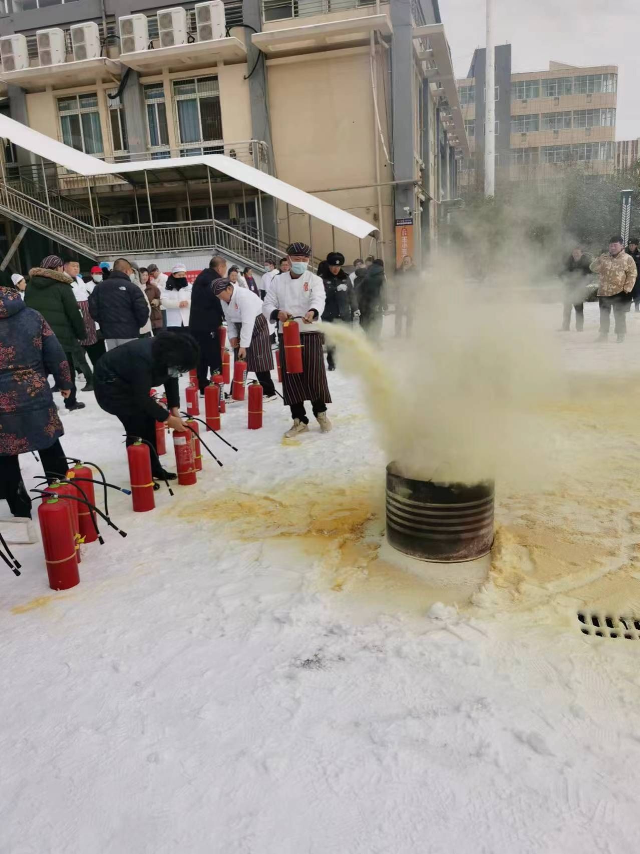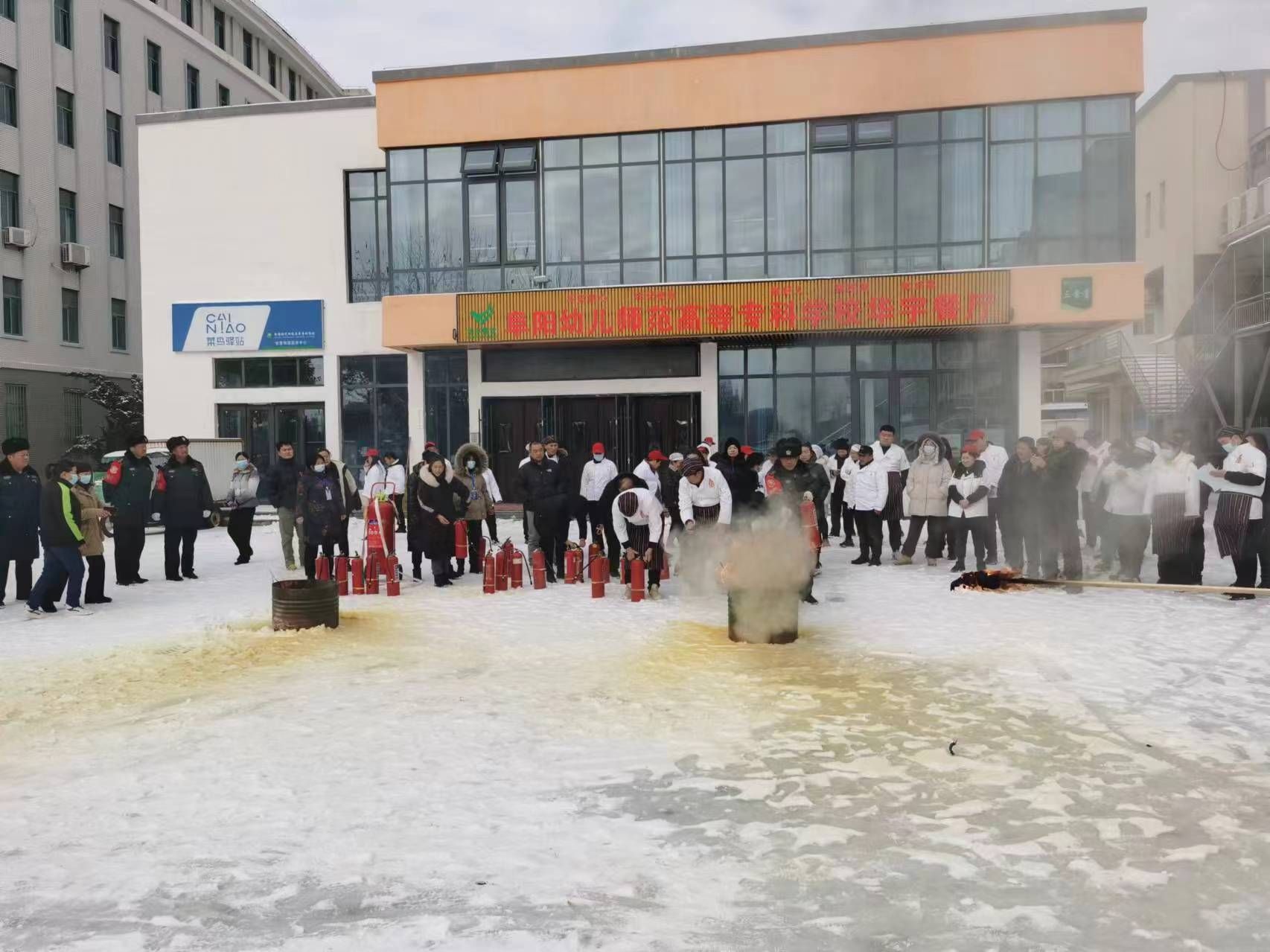 演练中,总务处(保卫处)张强同志紧贴学校宿舍、食堂、浴池等重点区域实际,从火灾原因分析、防灭火基本常识、干粉灭火器的种类及使用操作方法等四个方面进行了讲解示范,促使演训人员进一步熟悉灭火装备操作使用和防火灭火的处置流程。在消防安全员的具体指导下,演训人员克服冰雪恶劣天气影响,逐一进行实操演练,针对个别人员操作使用灭火器材动作不规范现象,消防安全员现场进行纠正和再讲解,整个过程组织严密,人员积极踊跃,演练全程正规有序,达到了预期效果。