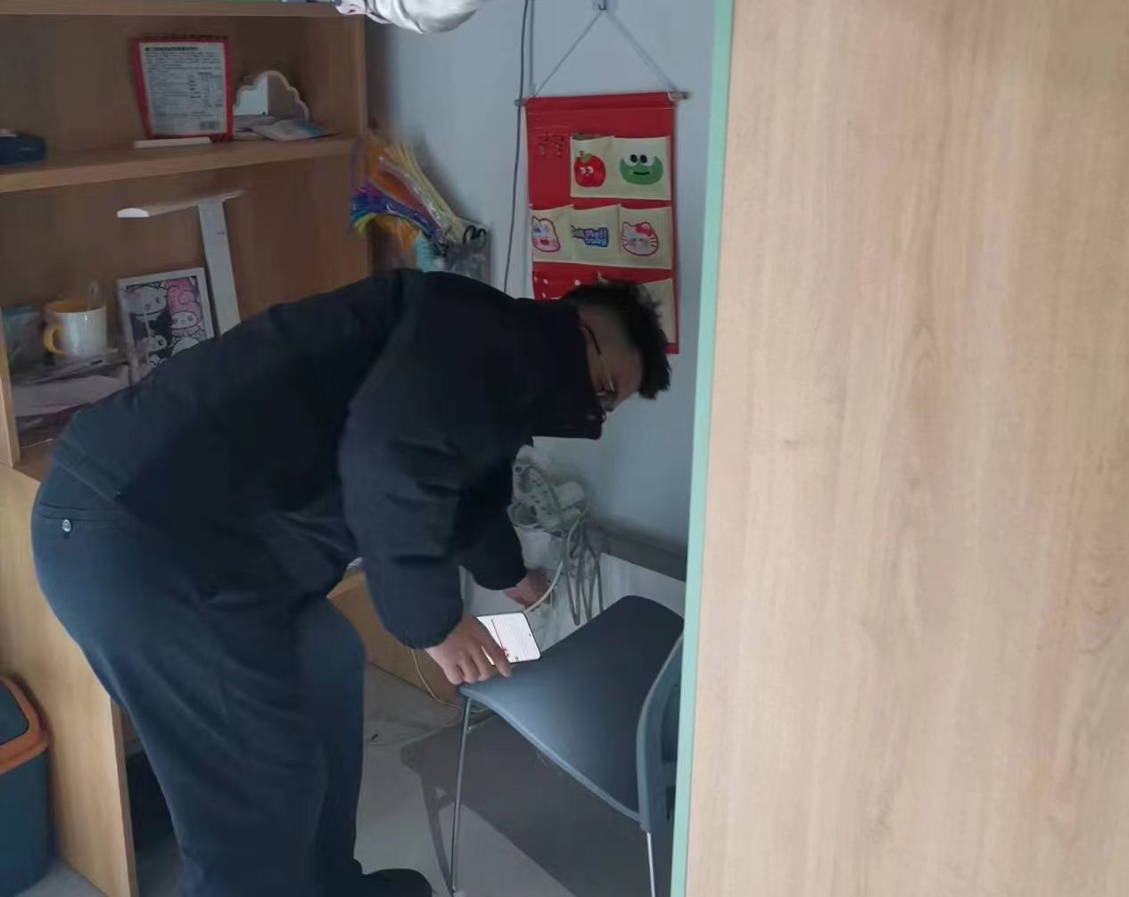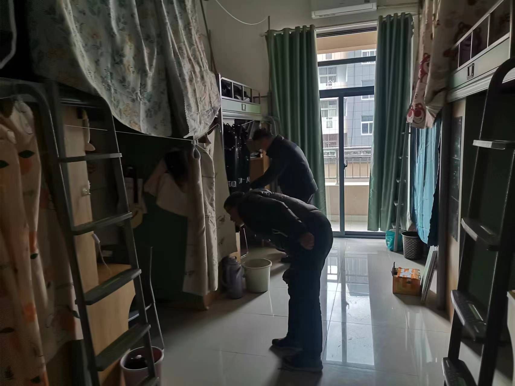 检查中,各小组全面排查了学生宿舍、教学楼馆、南北区配电房、食堂、电瓶车棚、校内经营服务单位等场所,对消防设施设备、安全通道、电气线路、燃气管道和食堂排烟管道等进行了全面细致检查;对区域内消防安全责任是否落实、电器线路铺设是否规范、是否配置消防设施器材、指示标识功能是否正常有效、疏散通道安全出口是否畅通、消防控制室值班操作人员是否在岗在位情况进行了重点查看。在检查8栋学生宿舍时,检查组逐楼层、逐房间重点查找了有无电线裸露外接、私拉飞线、电瓶车室内充电现象;宿舍内有无违规使用小型电磁炉、电饭锅等常见大功率电器现象,针对检查出的违规电器用品,检查组现场进行了标记标识和集中存放。