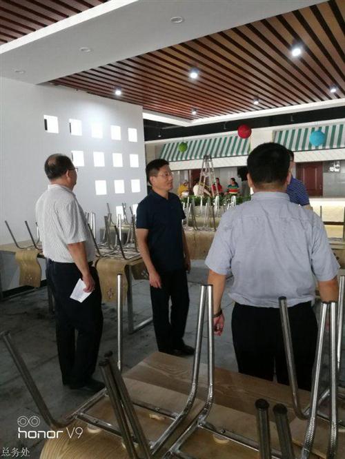 汤志一行首先来到升级改造一新的第一食堂,现场听取总务处负责人和餐饮企业经理有关餐饮供应准备工作介绍,查看后厨设备安装进度。汤志指出,第一食堂升级改造备受师生瞩目,“民以食为天,吃以安为先”,一定要保证开学如期开放供应,为师生提供安全可口、价廉物美的饭菜。