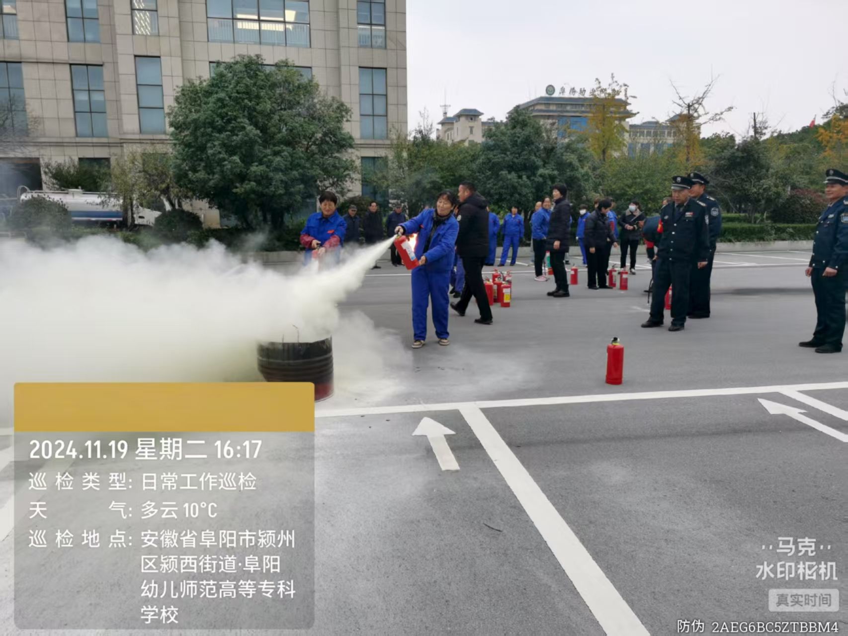 全体师生安全撤离至指定地点后,各班级迅速清点人数并向现场总指挥汇报。随后,学校消防安全负责同志为师生们现场讲解并演示了灭火器的正确使用方法、初起火灾的扑救技巧以及火场逃生的关键要点。部分师生代表还在专业人员的指导下,亲身体验了使用干粉灭火器扑灭明火的操作流程。