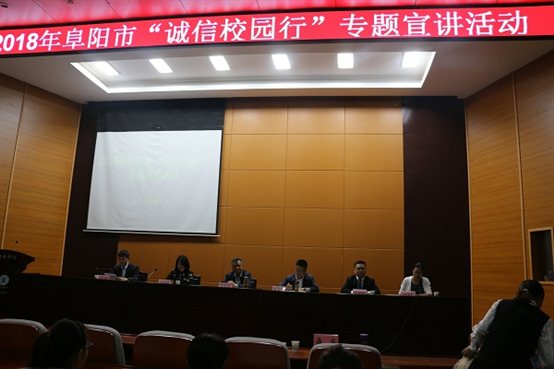 5月22日下午,由我校学生处老师带领学生赴阜阳师范学院参加阜阳市2018年“诚信校园行”专题宣讲活动。人民银行、国家开发银行、农村商业银行、交通银行、阜阳师范学院的有关领导就生源地助学贷款的首贷、续贷、还款流程和诚信问题、金融小知识等问题进行详细介绍。活动最后进行了互动环节,银行工作人员现场解答了学生提出的问题。