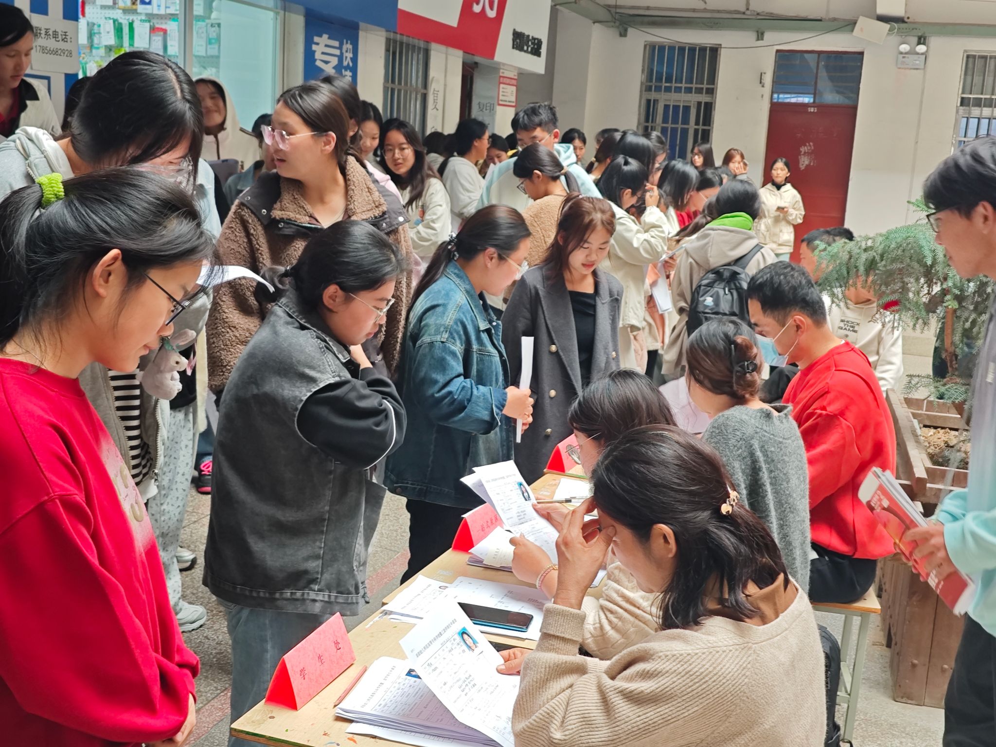活动现场,应聘学生积极询问,招聘单位人员耐心解答,通过面对面交流,学生更加深入了解各用人单位岗位要求,并结合自身的专业特长,应聘心仪岗位。